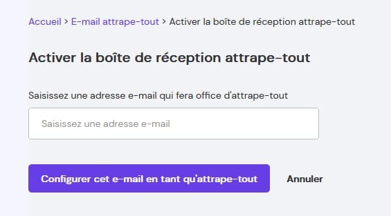 Il vous suffit de spécifier l’adresse email que vous souhaitez définir comme attrape-tout et de cliquer sur Configurer cet e-mail en tant qu’attrape-tout.