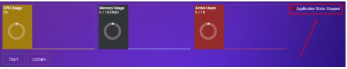 Tous les mods doivent être installés lorsque le serveur est à l’arrêt. Pour vous en assurer, vous pouvez ouvrir la section Statut et voir si le statut de l’application est indiqué comme étant arrêté :