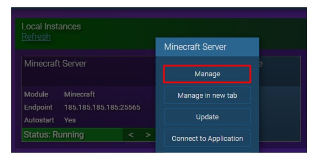 Pour installer Forge sur le panneau de jeu, il suffit de faire un clic droit sur votre instance et de sélectionner Gérer :