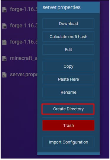 Créez un dossier de mods en cliquant avec le bouton droit sur n’importe quel fichier/dossier et en sélectionnant l’option Créer un répertoire :