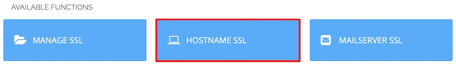 Dès que le domaine souhaité est ajouté au panneau, dans la section Fonctions disponibles, cliquez sur SSL et choisissez nom d’hôte SSL :