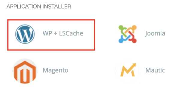 Faites défiler la page jusqu’à la section de l’installateur d’applications et choisissez WP+LSCache :