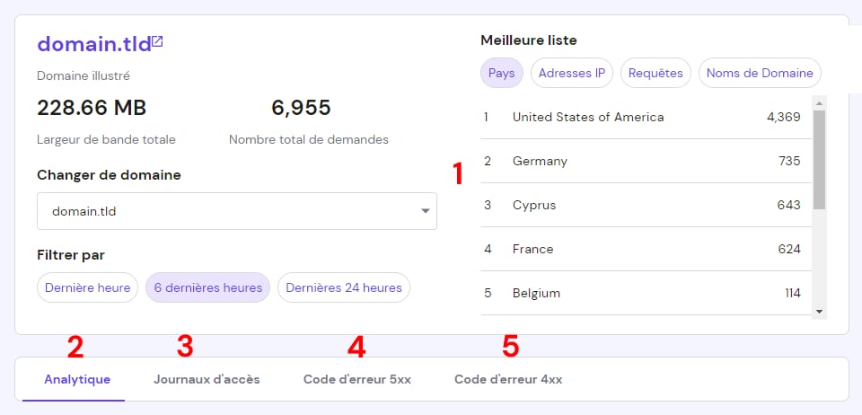 La section Analytique et un outil pratique pour voir toutes les informations importantes sur les visites de votre site web : depuis quels pays vos sites web sont les plus visités, quels appareils vos visiteurs utilisent, et bien plus encore.