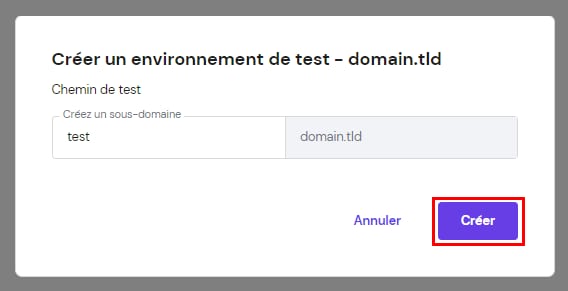 Enfin, indiquez le nom du sous-domaine et cliquez sur Créer :