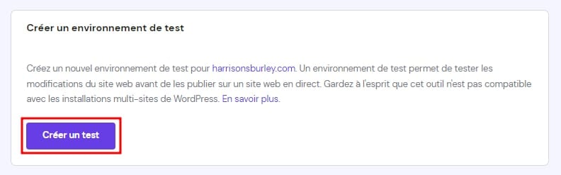 • Les sites web de test sont créés en tant que sous-domaines et ajoutent une nouvelle base de données à votre hébergement. Si vous ne pouvez plus créer de sites web de test, vous devrez mettre à niveau votre plan.