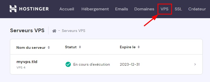 Chaque fois que vous achetez un nouveau VPS, il est affiché dans la section VPS :