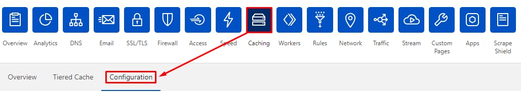 Ou, à partir de l’onglet Mise en cache, cliquez sur Configuration :
