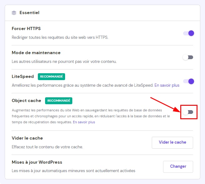 Si votre plan actuel n’inclut pas le cache d’objets et que vous êtes intéressé par cette fonctionnalité, vous pouvez envisager une mise à niveau de votre plan