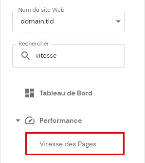 Vous pouvez facilement accéder à PageSpeed Insights et générer des rapports en naviguant dans Sites web → Gérer, recherchez Vitesse des Pages dans la barre latérale de gauche et cliquez dessus :