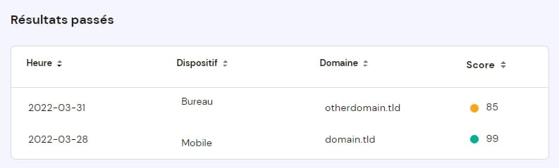 Cette section donne un aperçu du score global de vitesse de votre site web, ainsi que des résultats des aspects analysés par PageSpeed Insights :