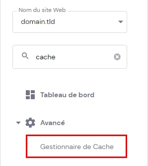 Pour activer cette fonctionnalité, il suffit d’aller dans Sites web → Gérer, recherchez Gestionnaire de cache dans la barre latérale et cliquez dessus :