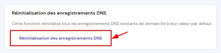 3. Une fois dans la zone DNS, descendez jusqu’au bas de la page et cliquez sur le bouton Réinitialiser les enregistrements DNS :