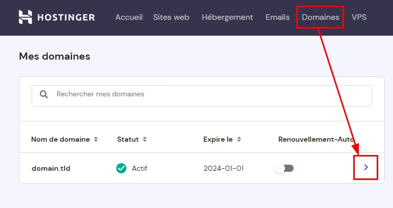 Si votre nom de domaine est enregistré chez Hostinger