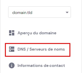 2. Dans le menu de gauche, allez à la sous-section DNS / Serveurs de noms :