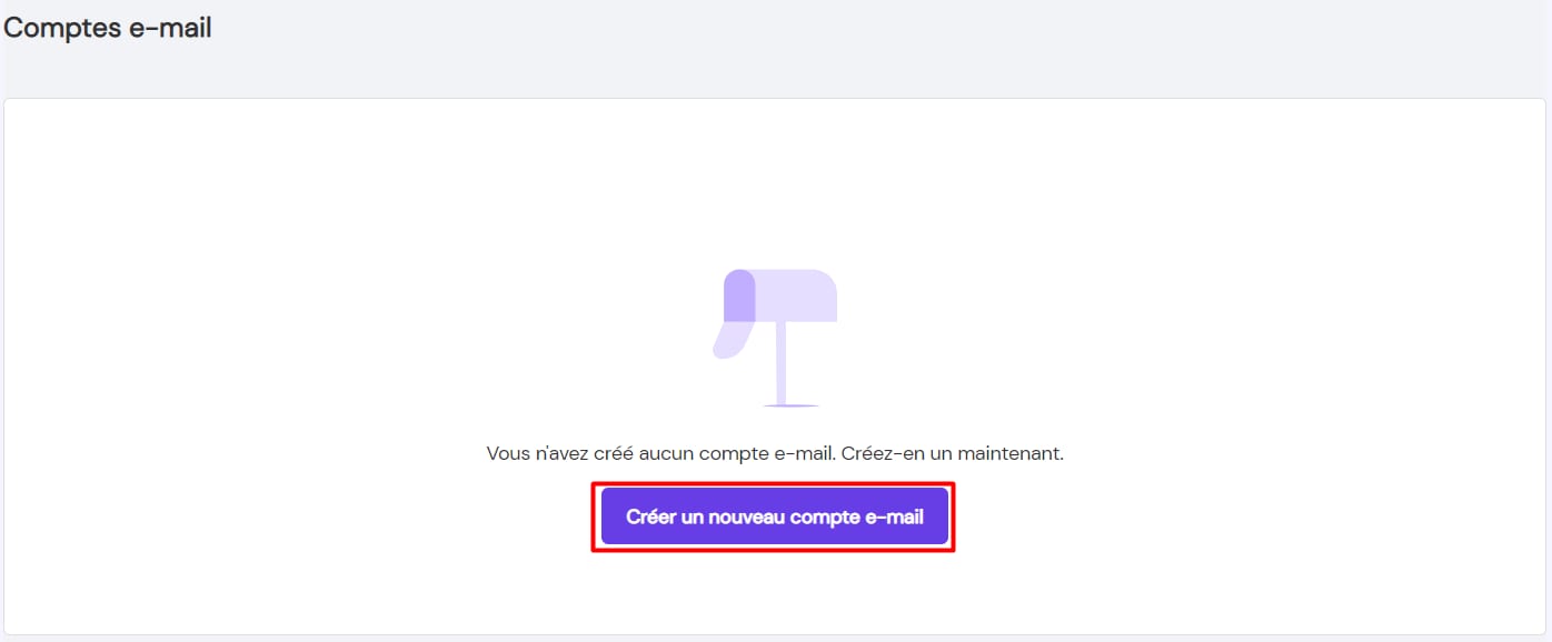 Là, vous pourrez créer votre compte e-mail en cliquant sur Créer un nouveau compte e-mail :