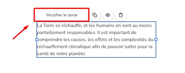 1. Dans l’éditeur du site Web, cliquez sur n’importe quel élément de texte et sélectionnez Modifier le texte :