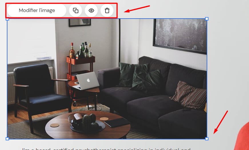 Cliquez sur un élément d’image pour voir plus d’options (modifier, recadrer, dupliquer, supprimer, redimensionner) :