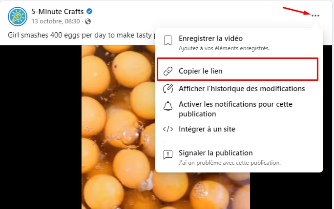 1. Copiez l’URL de la vidéo Facebook sélectionnée :