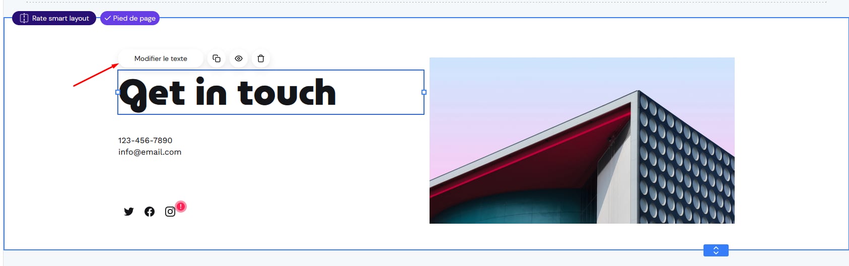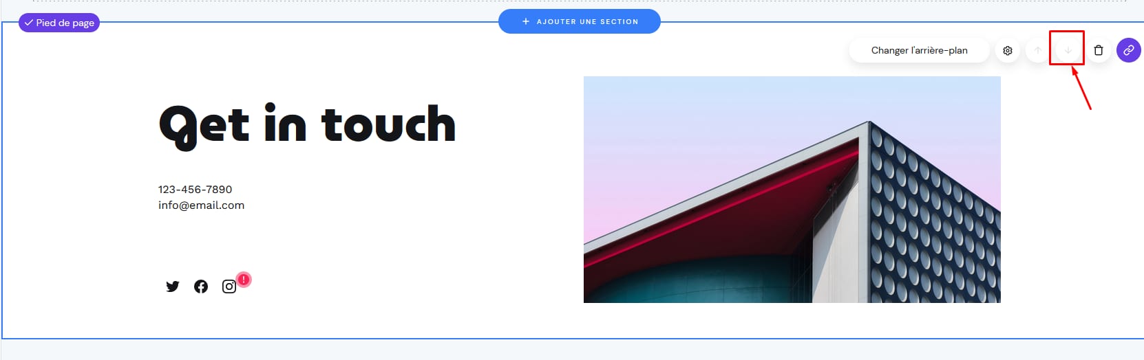 Remarque : si votre pied de page est épinglé à toutes les pages du site web, les modifications apportées à une page particulière se répercuteront également sur les autres pages.