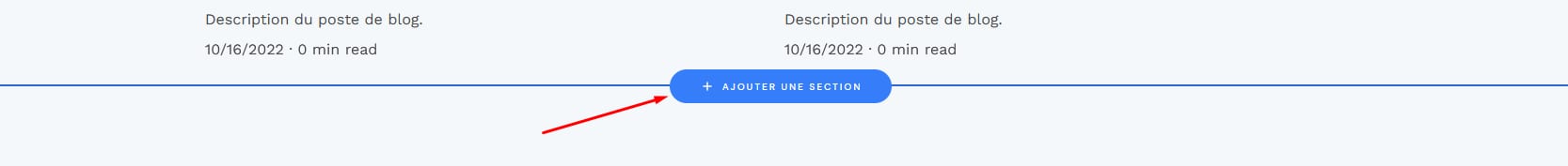 1. Dans l’éditeur, positionnez votre souris entre deux sections et cliquez sur Ajouter une section :