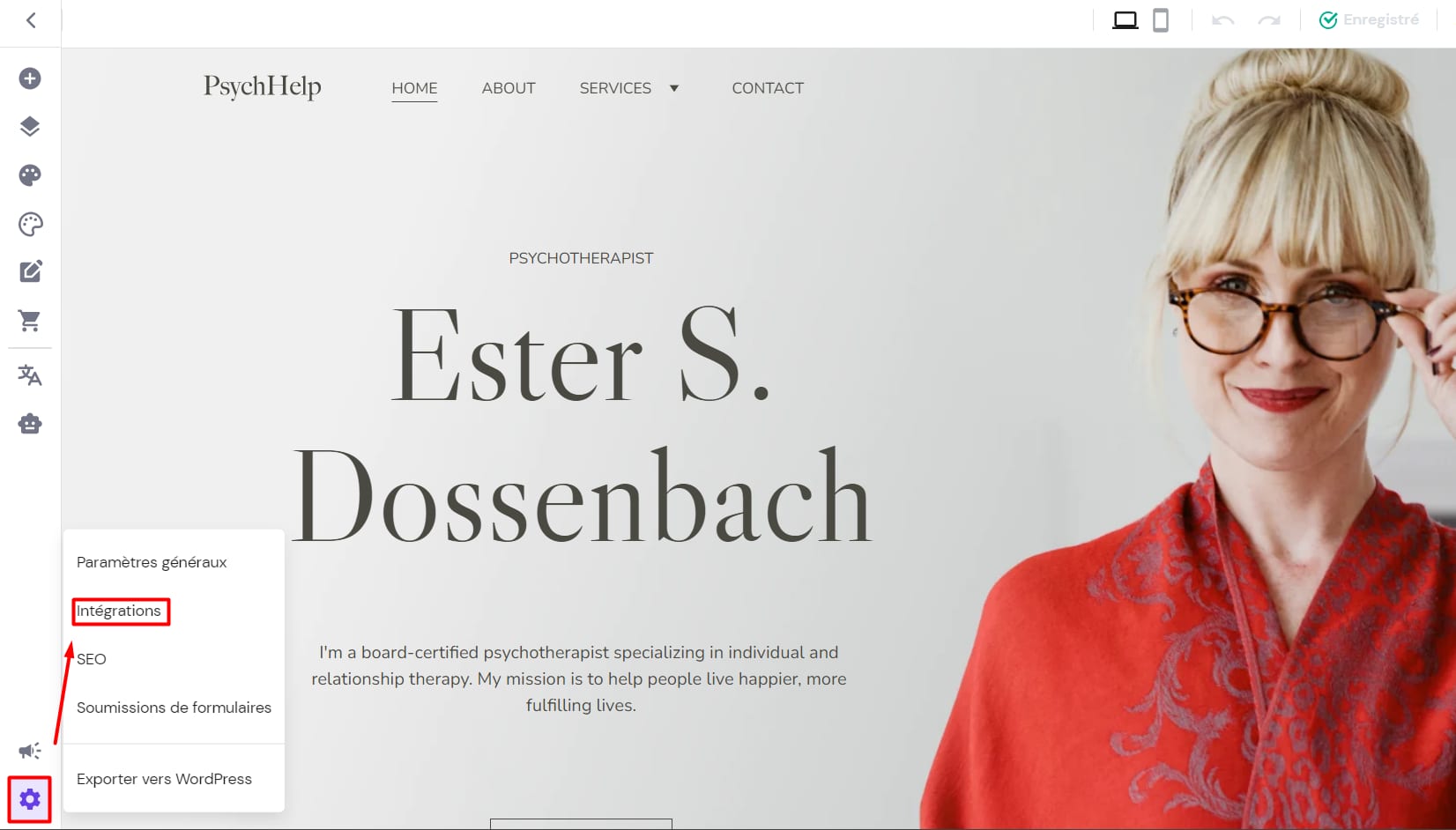 Toutes les intégrations incorporées se trouvent dans la section Intégrations des paramètres de votre site Web :