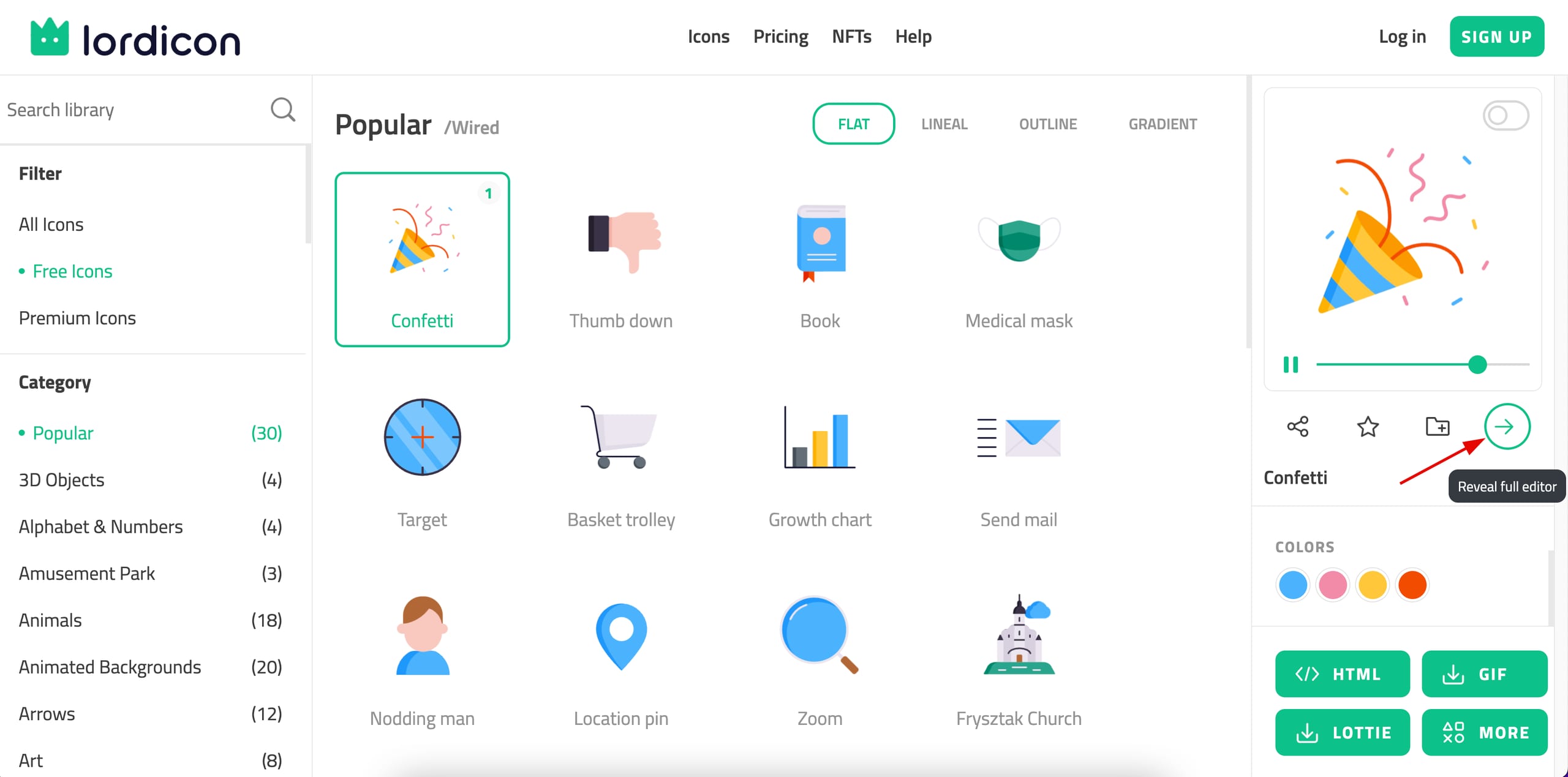 1. Connectez-vous à Lordicon et cliquez sur l’animation de votre choix ; personnalisez-la si nécessaire :