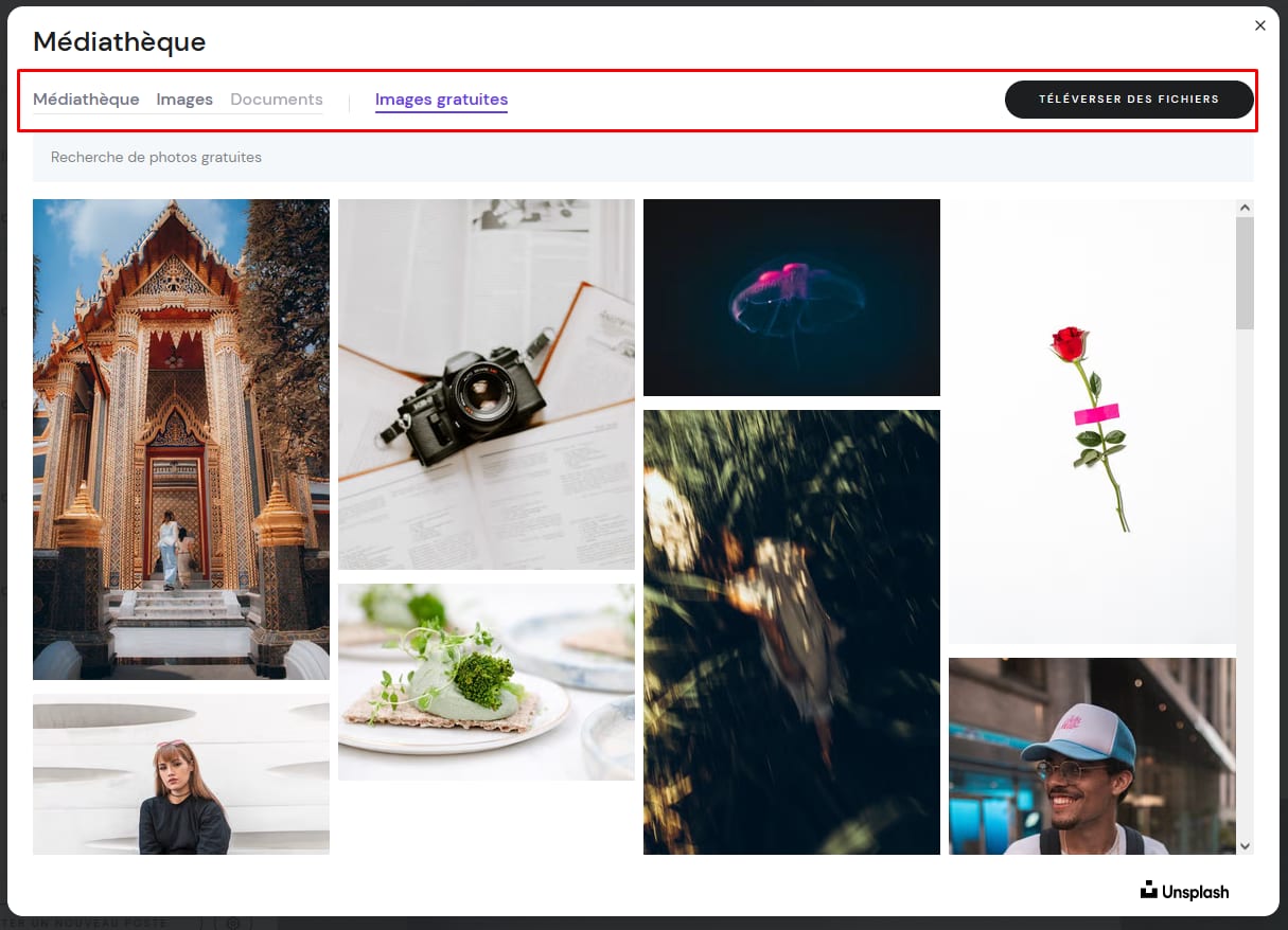 3. Sélectionnez une image dans votre médiathèque, parcourez les images gratuites ou téléversez les vôtres :