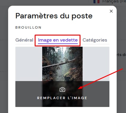 2. Ouvrez l’onglet Image en vedette et cliquez sur Remplacer l’image :