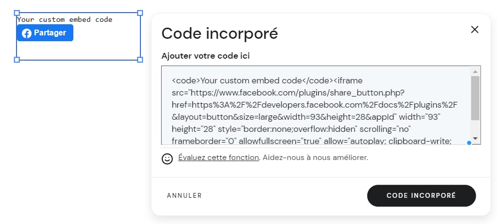 4. Si nécessaire, redimensionnez l’élément de code intégré et mettez votre site Web à jour.