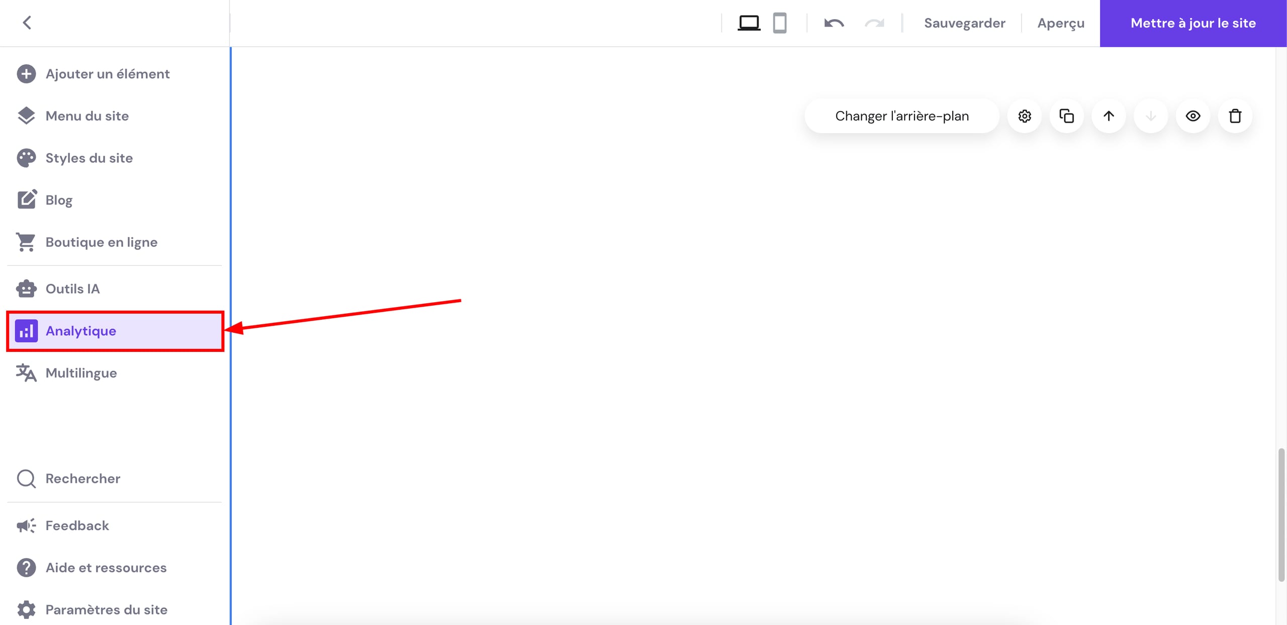 Dans l’éditeur, développez le panneau Analytique sur la gauche :