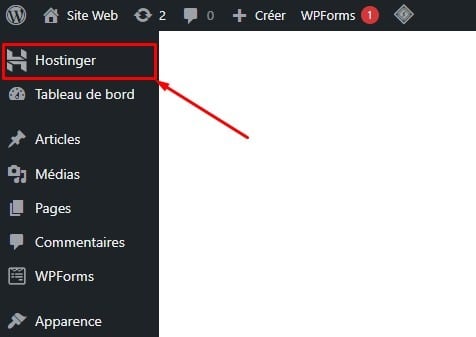 Si vous avez installé WordPress sur votre site Web lors de la première configuration de votre plan d’hébergement, en utilisant le programme d’installation automatique ou lors de l’ajout d’un site Web, vous verrez le plugin Hostinger sur le panneau d’administration de WordPress :
