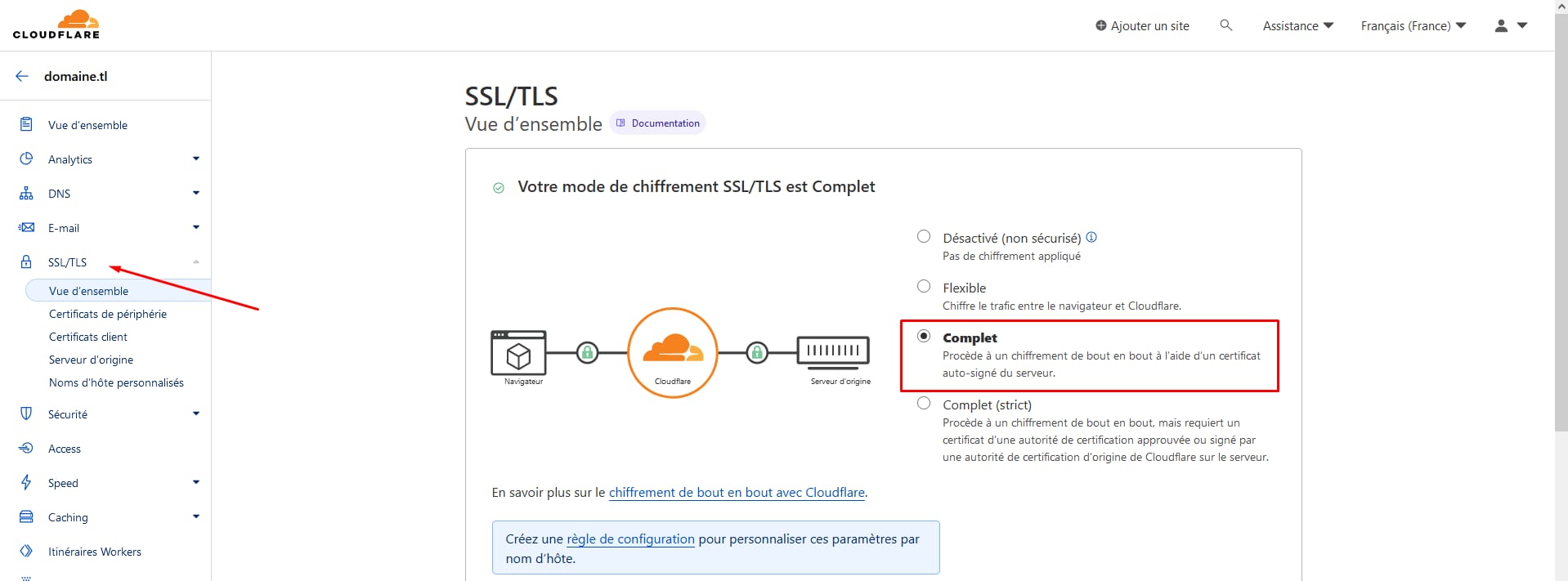 4. Ouvrez l’onglet SSL/TLS et sélectionnez l’option Complet :