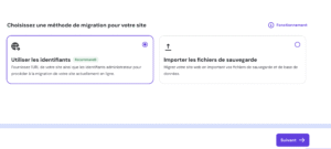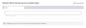 - Saisissez l’URL du site que vous souhaitez migrer. Finalisez le paiement en cliquant sur « Suivant ».