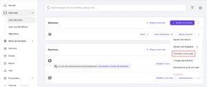 - Choisissez le site que vous voulez migrer, cliquez sur les trois points verticaux puis sur « Transférer le site web ».