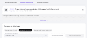 - Après avoir cliqué sur « Télécharger les fichiers », vous recevrez une notification indiquant que la préparation de la sauvegarde a commencé. Le temps nécessaire varie en fonction de la taille de votre sauvegarde. Vous pouvez suivre la progression dans l’onglet « Restaurer et télécharger ».