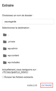 - Saisissez un nom de dossier, par exemple sauvegarde, puis cliquez sur « Extraire ».