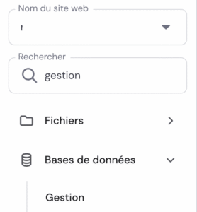 - Avant d’importer la base de données, vous devez créer une nouvelle base de données dans laquelle vous importerez la sauvegarde. Allez dans « Sites web » → « Tableau de bord » → « Bases de données » → « Gestion » dans le menu latéral.