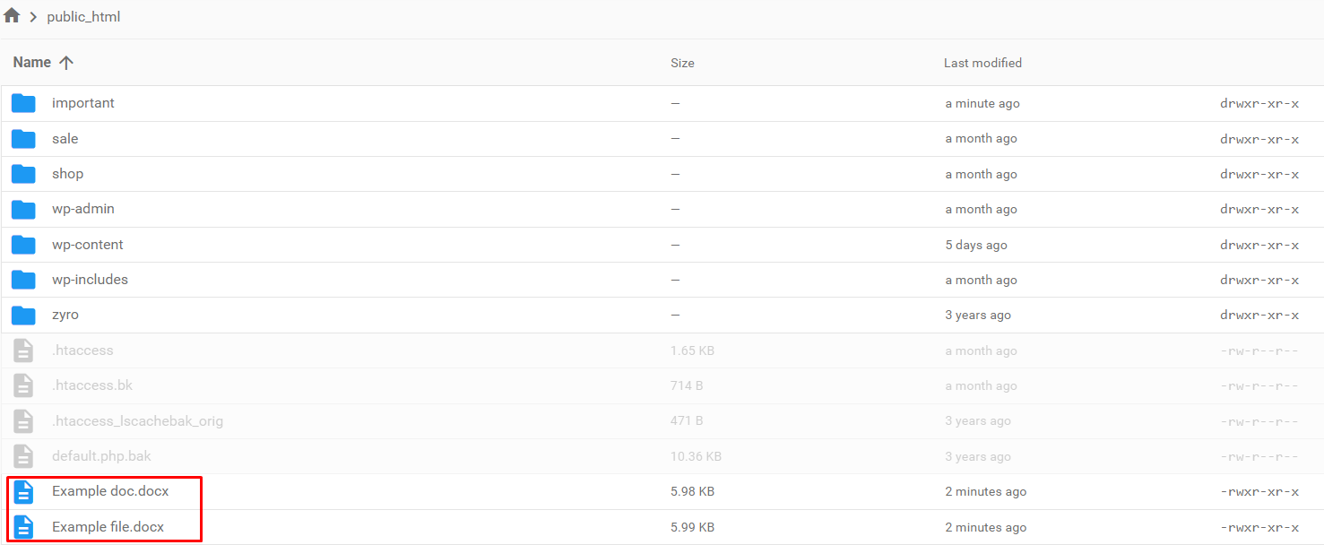 C’est tout. Les fichiers Microsoft Wordque vous avez téléchargés seront répertoriés dans le répertoire public_html.