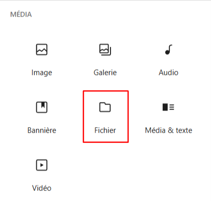 Cliquez sur l’icône Outil d’insertion de bloc + pour ouvrir le menu.