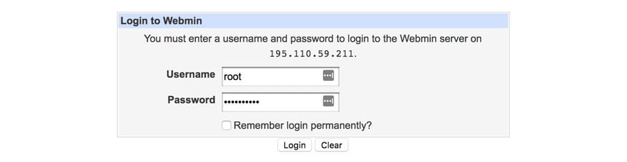 Maintenant, accédez et copiez votre adresse IP VPS, ajoutez https en face et : 10000 port à la fin pour accéder à Webmin/Virtualmin. Il devrait ressembler à ceci : https://195.110.59.211:10000