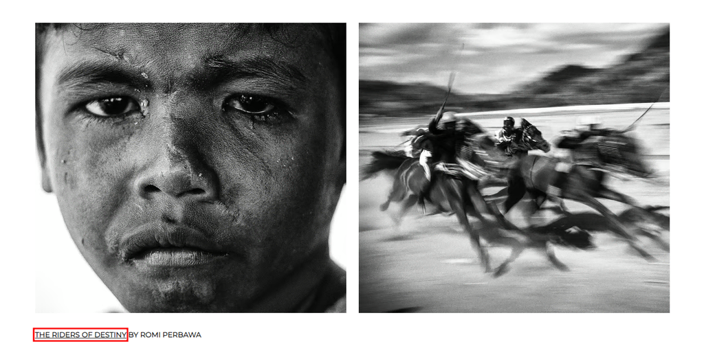 Les projets des photographes sont présentés avec deux images et un texte d’ancrage du titre du projet qui renvoie à des sites externes. Comme Pinzoo, le site renvoie à la source originale du travail du photographe.