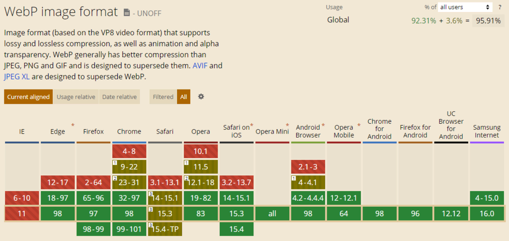 Compte tenu de la tendance actuelle, on peut s’attendre à ce que d’autres navigateurs qui ne prenaient pas en charge WebP finissent par le faire, alors n’hésitez pas à suivre l’évolution de la situation.