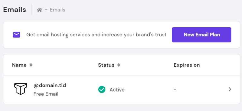 Ada beberapa jenis layanan email yang tersedia di Hostinger. Jika Anda melihat tampilan seperti berikut di halaman Email: