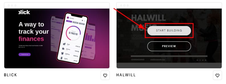 Setelah beberapa saat, Anda akan diarahkan ke galeri template dan pilih yang ingin digunakan dengan mengeklik Start building: