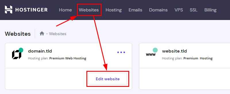 Untuk mengakses Website Builder dari hPanel, buka menu Website Edit website