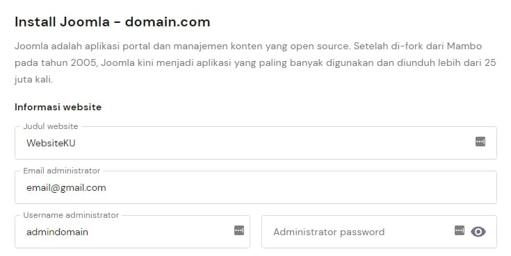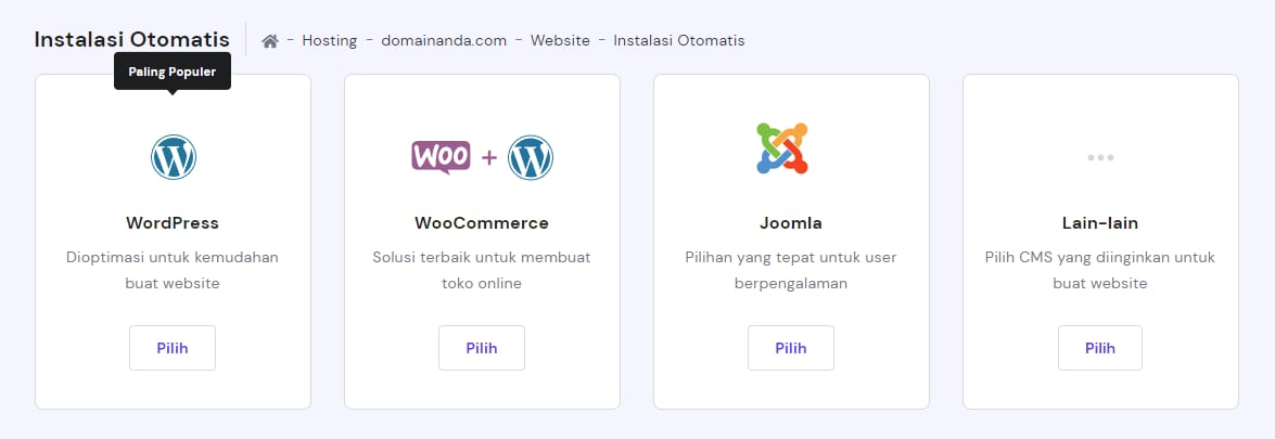 Gunakan fitur Instalasi Otomatis untuk menginstall aplikasi secara otomatis. Dengan fitur ini, CMS seperti WordPress, Joomla, dan Drupal dapat terinstall otomatis. 😊