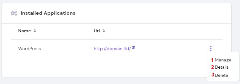 Anda dapat mengelola CMS yang diinstall melalui bagian Aplikasi yang diinstall: