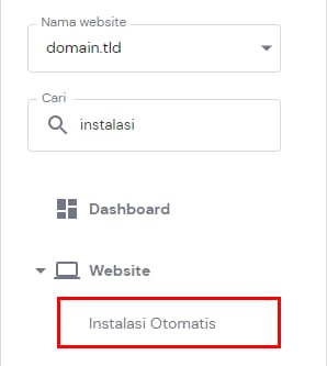 Untuk menggunakan install aplikasi otomatis, klik Website → Kelola, lalu cari menu Instalasi Otomatis: