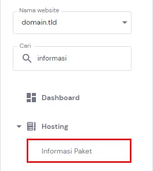 Untuk mengubah lokasi server Anda, buka Website → Kelola → dan cari Informasi Paket dari menu sebelah kiri: