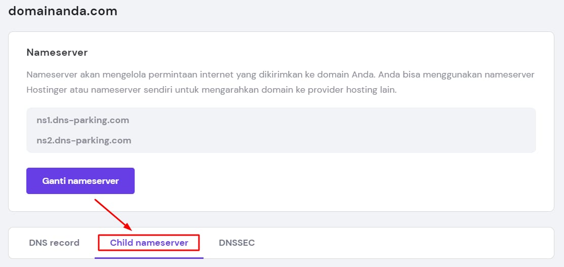Tidak semua domain mendukung child nameserver. Untuk info selengkapnya, silakan hubungi tim Customer Success